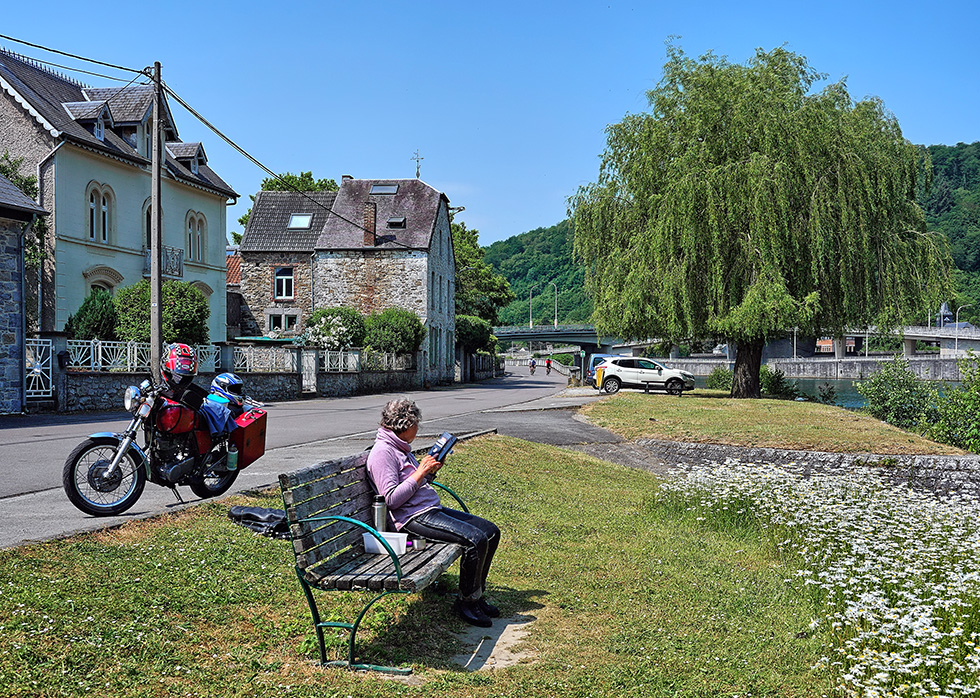 Anfang Juni, lange Tage, nicht zu heiss, kein Niederschlag in Sicht - ab aufs Moppi und nach Nordfrankreich. Durch die Ardennen, da laufen schön kleine aber weit tragende Strecken nach West-Südwest, so ist da die Landschaft gefaltet, N929 oder N938. Ein Highlight ist immer, ein Stück Maaslauf mitzunehmen. Der Sprit ist derzeit in -B- sehr günstig,