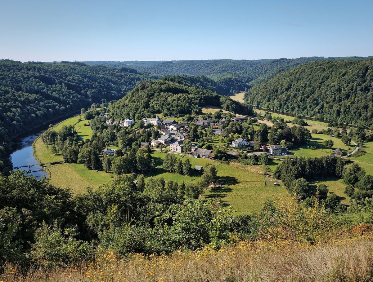 Météo hatte eine gute Prognose abgegeben, die SR frisch geserviced und eine schnuckelige Unterkunft in Braux gefunden mitten in der Hochsaison - nichts wie auf! Über Ostbelgien und die Amel, die Salm, dann ist man schon mitten in den Ardennen. Früher waren die Ardennen oft ein Regenloch, mit den aktuellen Änderungen werden sie freundlicher. Über die Höhe von Samrée an die Aisne, auch die Belgier haben eine kleine Aisne. In Hotton an der Ourthe wollten wir Pommes essen, aber die Kirmes hatte unsere Lieblingsfritérie zugeparkt - geschlossen.