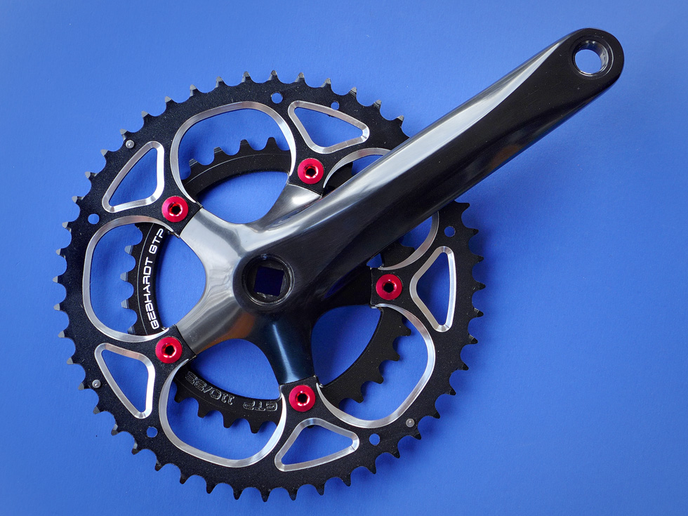 Das äußere Kettenrad 48 Zähne hat Schaltnieten und ist aus der Legierung ALU 2014 T6, also gute Mittelklasse.