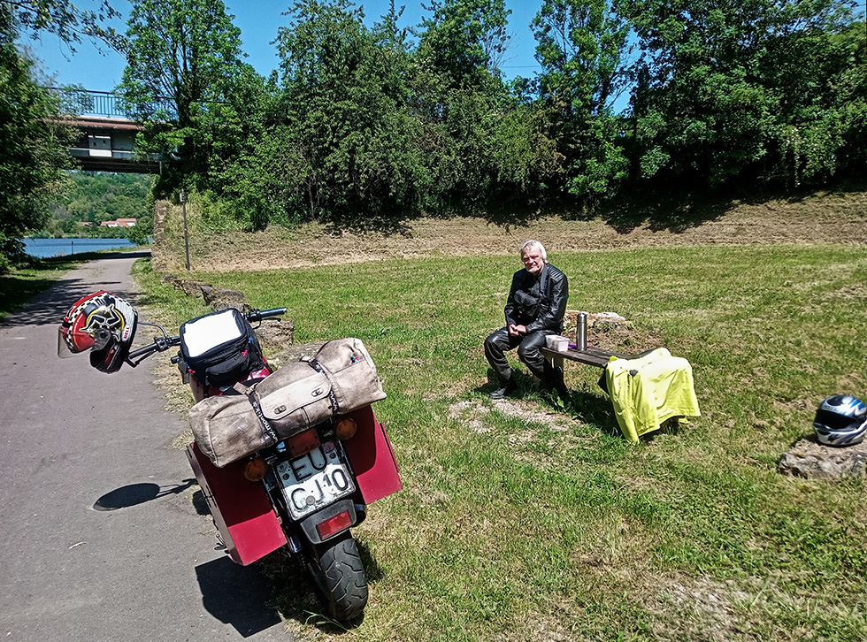 Unsere Reiseberichte beginnen mit: Die Wetterfrösche hatten uns ein stabiles Hoch vorhergesagt, also Moppi gesattelt und los. Die mittlere Mosel, das Teil an der luxemburgischen Riviera, ist immer wieder schön. Es ist ruhiger als an der deutschen Mosel, dafür das Wetter besser und das Benzin günstiger. Über Thionville nach Lothringen, die alte Stahlstadt Hayange, früher Arcelor, dann Mittal, heute Umstrukturierung. Die Bäche Mad und die kleine Schwester Madine, wunderbar, auch ohne das Freizeitzentrum Lac de Madine. Das südliche weite Lothringen hat einen ganz anderen Charakter als das nordöstliche industrialisierte Lothringen. Nach Süden führt eine Obststrasse, unspektakulär, aber für die Seele, nach Commercy, Void Vacon. Dort treffen wir den Rhein-Marne-Kanal und die D10 mit den Schleusen nach Mauvages, ein Highlight und fast menschenleer, dort geht der Kanal mit einem Tunnel durch den Berg. Weiter nach Südwesten, in Andelot ist ein Dutchie-Campingplatz mit leckeren Fritten und bezahlbaren Chalets, immer wieder gerne. Chaumont hat dieses sehenswerte Viadukt über ein Nebental der Marne, besonders schön im Morgenlicht. Der Weg nach Südwesten geht durch weite geschwungene Landschaften, gute Strassen, wenig Verkehr, einfache Navigation, über Chatillon sur Seine nach Montbard mit seiner imposanten Burg. Wer kennt das Morvan? Eine von vielen nicht beachtete Perle der französischen Mittelgebirgslandschaft, sehr grün, es muss dort ausreichende Niederschläge geben, einsam mit guten Strassen, solange man im Département Côte d'Or unterwegs ist, ein Vorzeige-Département, mit Tische-und-Bänke-Rastplätzen alle 10km. Das Département Nièvre im Südwesten davon ist da etwas anders...Überhaupt wie immer: passt auf beim Wechsel des Départements, auch was die Rennleitung angeht...In Toulon sur Arroux eine Rast auf der Auenwiese, das sind die Orte, wo die Zeit langsamer geht, wir mögen das, dieses unspektakuläre Mittelfrankreich auf dem Land. In Charolles stehen diese leckeren Steaks auf der Weide, in la Clayette ein bourgeoises Wasserschloss, das Alles ist Vichy-Frankreich, unzerstörte Städte, Kommentare zur Historie schwierig. Nach Osten durch das Beaujolais, eine waldreiche Gegend mit viel Holzwirtschaft und nur im Osten, an den Hängen der Saône, findet man die Bilder, die man hier mit dem Beaujolais verbindet, diese malerischen Weinberge. Als Wein trinken wir aber Corbières und Minervois, die haben weniger Säure. Die Überquerung der Saône West- Ost von klein nach klein ist knifflig, weil nur die grossen Richtungen ausgeschildert sind, der Rest nicht. Östlich des Flusses, in der Bresse, sind die Dombes, eine Tümpellanschaft, alle 5km ein flacher See, wenige Dörfer, viel Gegend, kein Verkehr, ach ist das schön zum cruisen. Der Ain ist nördlicher Zufluss der Rhone und kommt aus dem Jura, viel Wald, fast menschenleer, wenig Arbeit. Holzwirtschaft, weiter im Norden früher die Feinmechanik = Uhrenindustrie, heute fast nur noch Tourismus. Leute, da ist es leer mit Super-Strassen. Das Wetter wird tatsächlich besser mit den Jahren, noch vor 20 Jahren war Jura die Regengarantie schlechthin, der Klimawandel hat auch im Jura seine Spuren hinterlassen, und für den Tourismus ist das evtl von Vorteil. Der angestaute Ain von Südwest nach Nordost ist eine Traumstrecke und weitgehend unbekannt. Die kalkigen schroffen Felsabhänge geben optisch richtig was her. Der Doubs durchzieht das Jura in Form einer Spingel, ein wunderschöner Fluss, und von den Flusskilometern ist das System Doubs-Saône-Rhone länger als die Rhone selbst, die Namensgebung unterliegt aber anderen Regeln, sonst hiesse die Rhone Doubs. Am Südrand der Vogesen in Luxeuil noch eine Übernachtung und danach durch die westlichen, sehr grünen Vogesen wieder nach Lothringen, in die weiten Landschaften am Oberlauf der Saar. Es ist ein wenig Technik, auf dem kürzesten und schonensten Weg durch Saarbrücken zu finden, ab in den Hunsrück, denn das Saarland ist sehr dicht bebaut und nicht überall spassig für Moppis, da nehmen wir auch mal die Autobahn, um endlose Ortsdurchfahrten zu vermeiden. Nohfelden und Birkenfed - Oberlauf der Nahe - ein Traum. Morbach - Bernkastel, durch die Vulkaneifel nach Hause, 1565 km in vier Tagen, Ölverbrauch ca 0,3 lit/1000km, keine besonderen Vorkommnisse, der Einzüllinder lebt! Grüsse aus der Eifel Alexandra & maro |