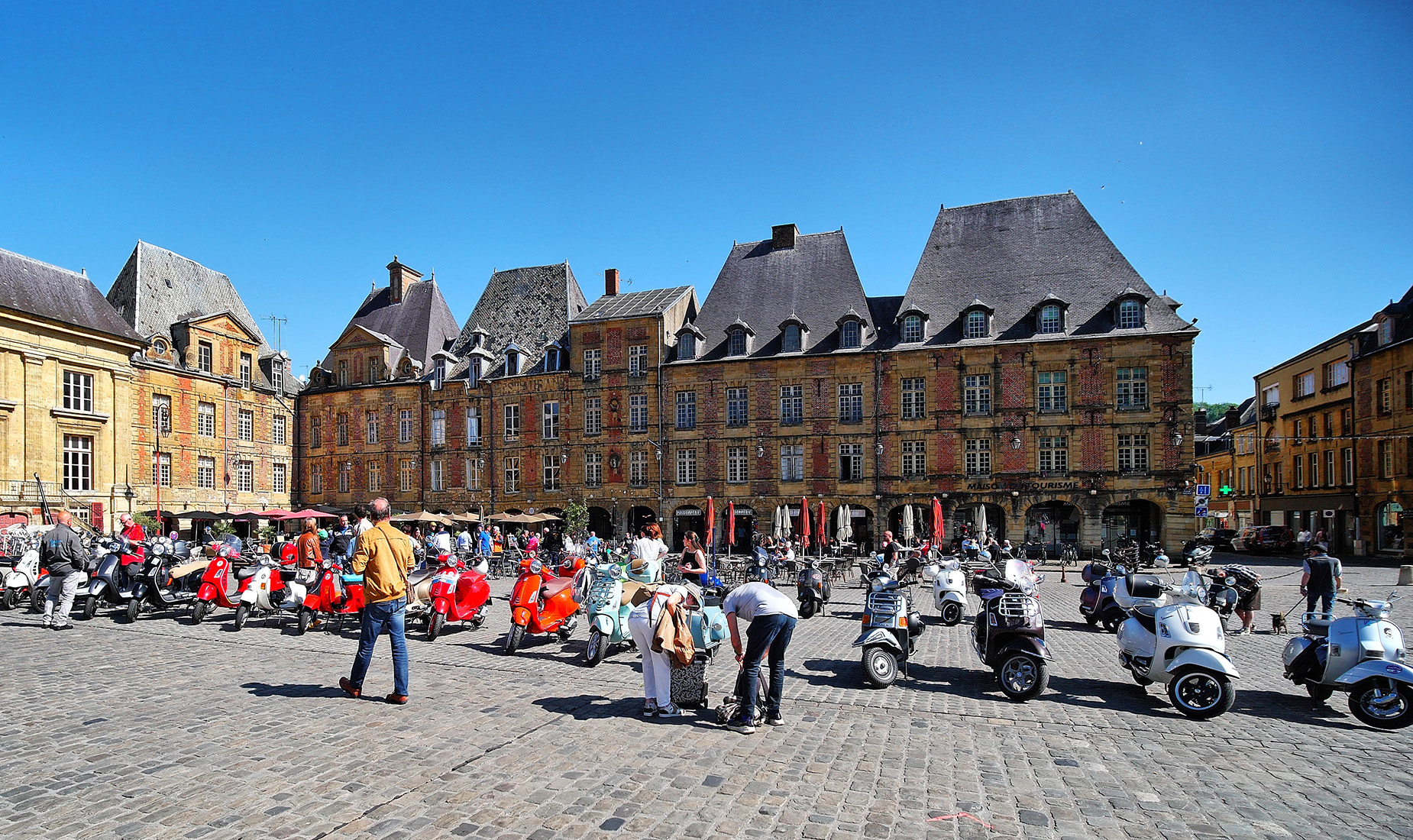 | Vespatreffen dort auf dem Platz |