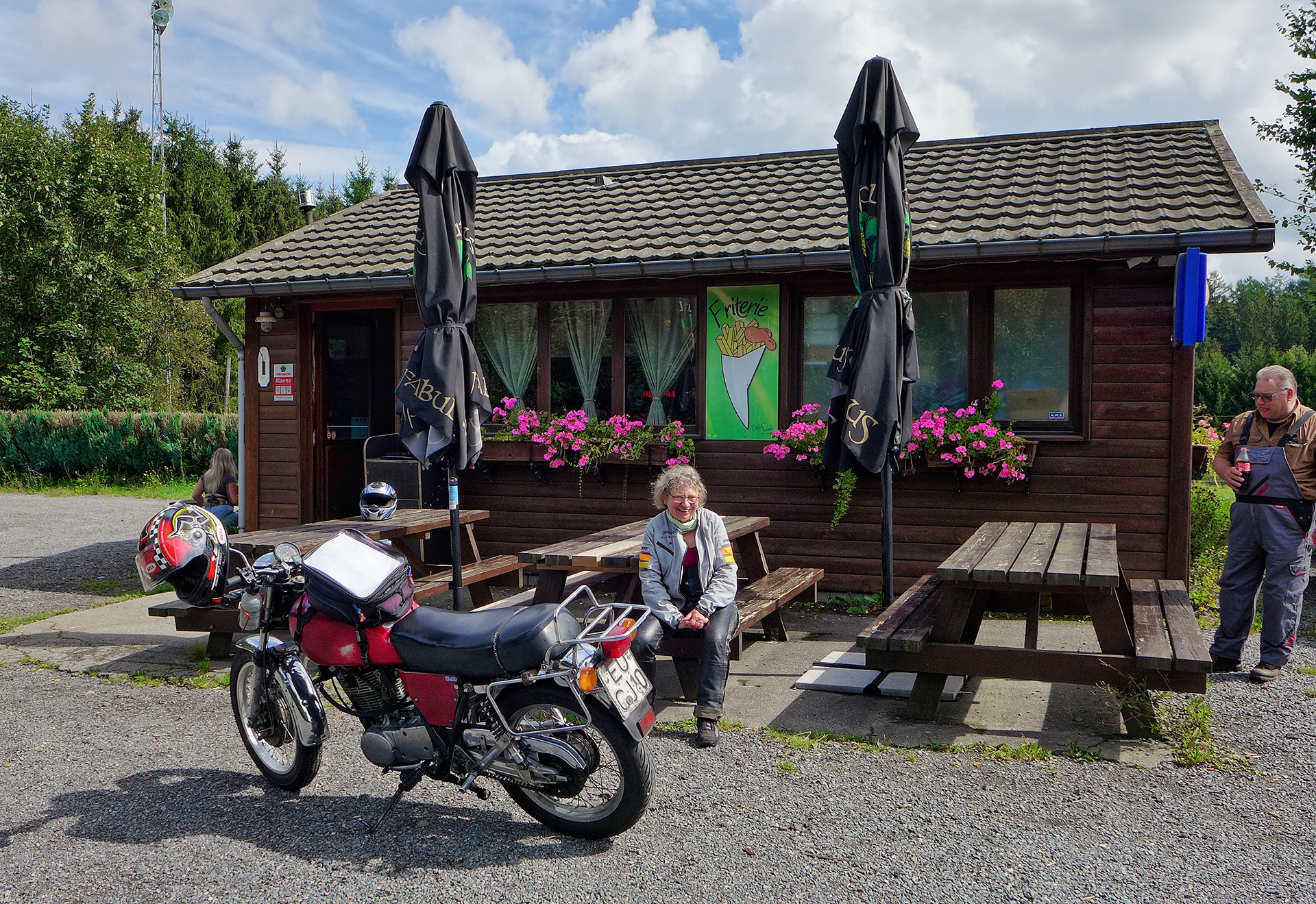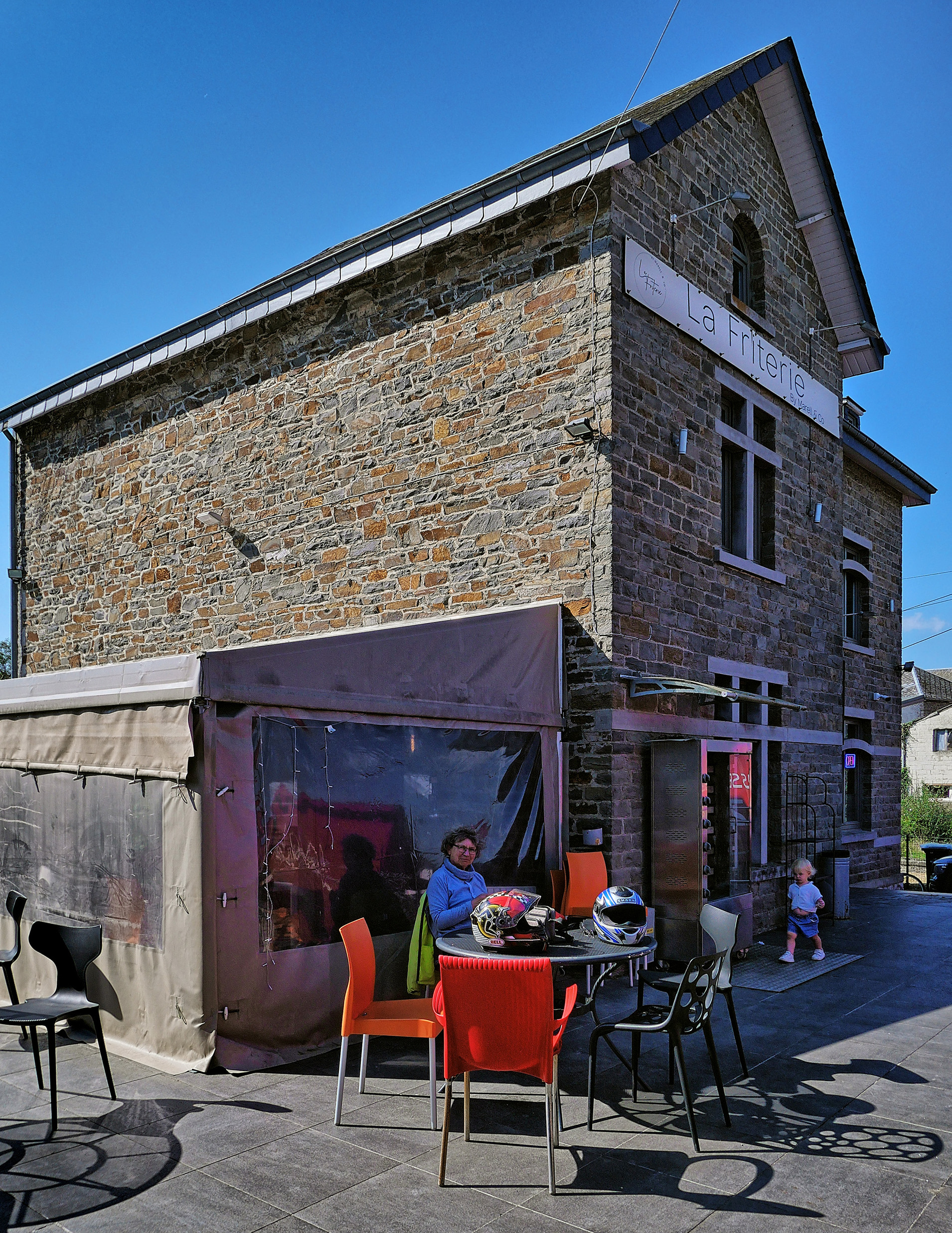 Die Meteorolügen hatten stabile Tage vorausgesagt, so beginnen Berichte gerne. Wir hatten uns zwei Pommes-Tankstellen ausgesucht: Friterie Marell & Co in Hotton und Chez Mimil östlich von Neufchateau an der N40. Marell hatten wir schon lange auf der Liste, und die Erwartungen wurden mindestens erfüllt: Klasse Pommes, gute Preise, angenehmes Sitzen, toller Ausblick. Hotton ist eine kleine Perle, nicht so bekannt wie Durbuy oder Bouillon, aber vielleicht ist das der Vorteil? Eine 5-Wege-Kreuzung an der Ourthe, von uns knappe 140km Weg, die Pommes waren es wert. Man muss genau auf die Öffnungszeiten achten, wir waren Fr zwischen 12 und 14h da. Von dort weiter nach Westen an die Maas, Givet, Fumay, Revin, das sind moodige Orte. In Givet, ganz auf dem Nordzipfel, wo Frankreich nach Belgien lugt (und dort natürlich ein AKW auf die letzten Maaskilometer hinsetzt) ist gastronomische Infrastruktur, wir waren gut und bezahlbar im Hotel Reflets Jaunes im gemütlichen Zentrum, und die Stadt wird dominiert von der alten Vauban-Zitadelle. Vauban war praktisch überall in Frankreich und hat da mit seiner fleissigen Schaufel berühmte Militärforts gebaut. Morgens hats gerne Nebel in den Tälern von Maas und Semois und wir hatten Glück, sie lösten sich gerade auf, also Semois hoch nach Rochehaut, da ist vielleicht nicht die schönste Semois-Schleife, aber sehr fotogen. Weiter nach Osten über Bouillon, dort braucht man navigatorischen Überblick, wie sich die Semois um und durch die Stadt wickelt, wo flussauf, wo flussab ist, und Tunnel als Durchstiche machen es noch komplexer. Kleine Strassen mit kniffliger Beschilderung führten uns über Dohan ( Klasse Semois-Schleife) nach Neufchateau, östlich davon die Friterie Chez Mimil, ein Kultort in amerikanischem Styling. Es ist lohnenswert, die Strecke so zu legen, dass man Luxemburg durchquert oder zumindestens tangiert, die Spritpreise halt, das gehört für uns mit zum Sport. Durch die Südeifel zurück nach Mechernich, 500km für zwei Pommesbuden, Moppifahrer brauchen Ziele. Grüsse aus der Eifel Alexandra & maro |