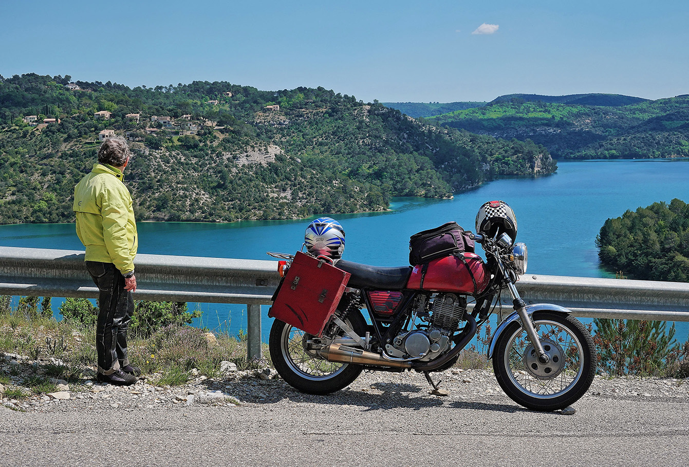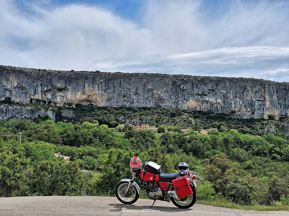 Ansouis ist eine kleine historische Stadt am Südrand des Luberon in der Provence. Wir hatten unsere SR in den Peugeot geladen und sind die 1000km dorthin in einem Rutsch, einfach zu fahren, Ausfahrt A7 Cavaillon und dann noch ca. 50km nach Ost-Südost. Die Unterkunft war klein und gemütlich, wir hatten etwas Augenmerk gelegt auf morgendliche Lizenz zum Anrollen für unsere betagte SR, das spart Energie und Nerven, über Tag kam sie dann warm immer auf den ersten Tritt. Ein weiterer Grund für Ansouis ist die gute Ausgangslage für Tagestouren in alle 4 Himmelsrichtungen, und so fuhren wir 250-300km pro Tag, wir hatten das Logis für eine Woche. Tag eins brachte uns auf die Südseite der Lure, die kleine Schwester des Mt. Ventoux, das Plateau von Valensole und den unteren Verdon mit dem Stausee von Esparron, in der Saison schwer zu ertragen, aber landschaftlich Spitze. Hoch über Riez ist die Kapelle St. Martin, dort ist Ruhe und ein traumhafter Rastplatz, ganz für die Seele. Bis zum Mittelmeer ist es nicht weit, und eine Genussfahrt mit 75kmh durch die Camargue ist fast ein Muss, die Route du Cacharel, für mich die schönste Strasse in der Camargue, nach les Saintes Maries de la Mer, dort war schon reger Badebetrieb. Wir legen die Strecke so, dass wir über die Alpillen müssen, vermeiden aber les Baux. Zwischen dem kleinen interessanteren westlichen Luberon und dem höheren östlichen Luberon ist dieser kleine Einschnitt zwischen Lourmarin und Bonnieux, immer ein Bild wert. In Lourmarin ist das Grab von Albert Camus und unauffälliger kann kein Promi-Grab sein, Camus liegt hinten links. Für das Felsriff von Sainte Victoire fehlte ein wenig die Sonne, Cézanne hätte sie malerisch beigetragen, wir haben so dort den Thymian gepflückt für das abendliche Mahl. Eingeborene bestätigten uns, dass es noch selten ein so grünes und blütenreiches Frühjahr gab, die Provence hatte viel mehr Regen im Frühjahr als wir hier. Das Département Var ist ansonsten mit das Knisternste da unten, g...ute Moppistrecken, im Bereich Rians - Draguignan, fast kein Verkehr, keine Passbildautomaten über Land, nun fahren wir da nicht zum Rasen hin, aber -F- darf von hinten blitzen und die Tarife sind anders als bei uns. Die Felswand von Lioux ist immer wieder auf unserem Programm, nicht sonderlich bekannt, nicht gehyped, keine Souvenirshops, das ist einfach ein grandioses Monument, ebenso wie die Schlucht der Nesque, nicht so bekannt wie Tarn oder Ardeche, mehr eine Perle im Verborgenen, und in Villes sur Auzon ist ein total knuffiger kleiner Campingplatz. Wir sagen Adieu mit einem Bild vom Windberg. Grüsse aus der Eifel Alexandra & maro |