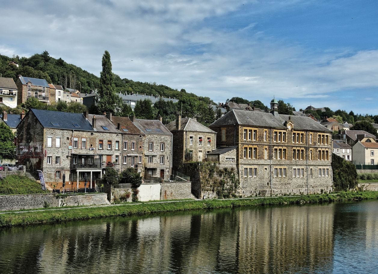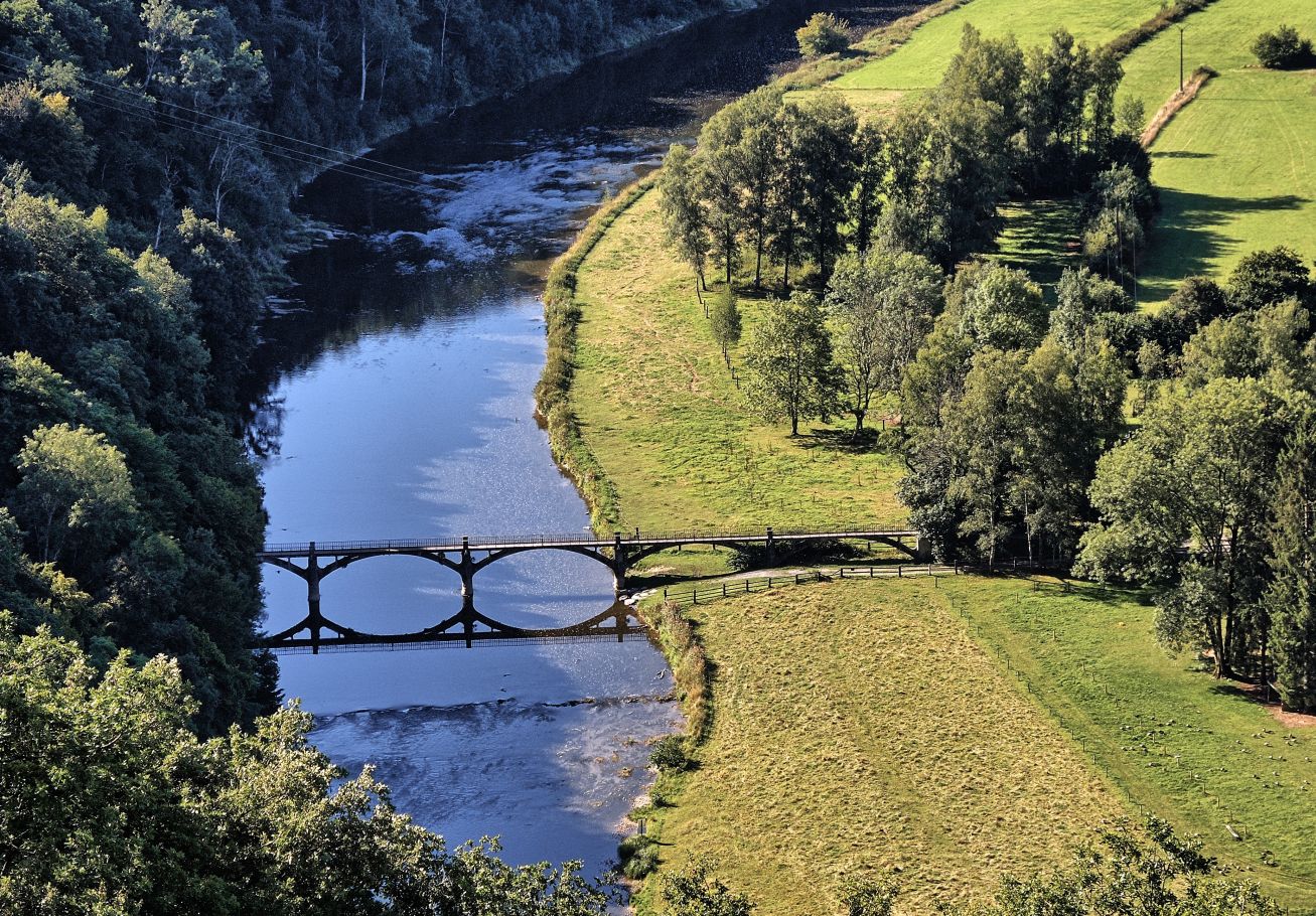 Es gibt einen Schleichweg südöstlich an Marche vorbei, denn Marche ist uns zu bisi. Weiter über Rochefort und Beauraing nach Givet an der Maas. Die alte Stahlindustrie an der Maas wird inzwischen sauber zurückgebaut, keine rostfarbenen Industrieruinen mehr. Fumay, Revin, Monthermé sind die klassischen Stationen auf dem Weg flussauf nach Süden, in Monthermé Rast gemacht am Fluss. Dort ist der Zusammenfluss mit der Semois, die Franzosen schreiben Semoy, unser Lieblingsflusstal in der Gegend mit traumhaften Moppistrecken, die auch jetzt in der Hochsaison fast leer waren (unter der Woche). Ein Schmankerl ist hoch nach Rochehaut, die Schleife von Frahan zu fotografieren, für und die schönste Schleife der Ardennen. Wetteronline zeigt uns von zuhause das aktuelle Wetter dort, dank Webcam exakt an der richtigen Stelle, die uns auch sagt, wann sich der häufige Tal-Frühnebel dort auflöst.