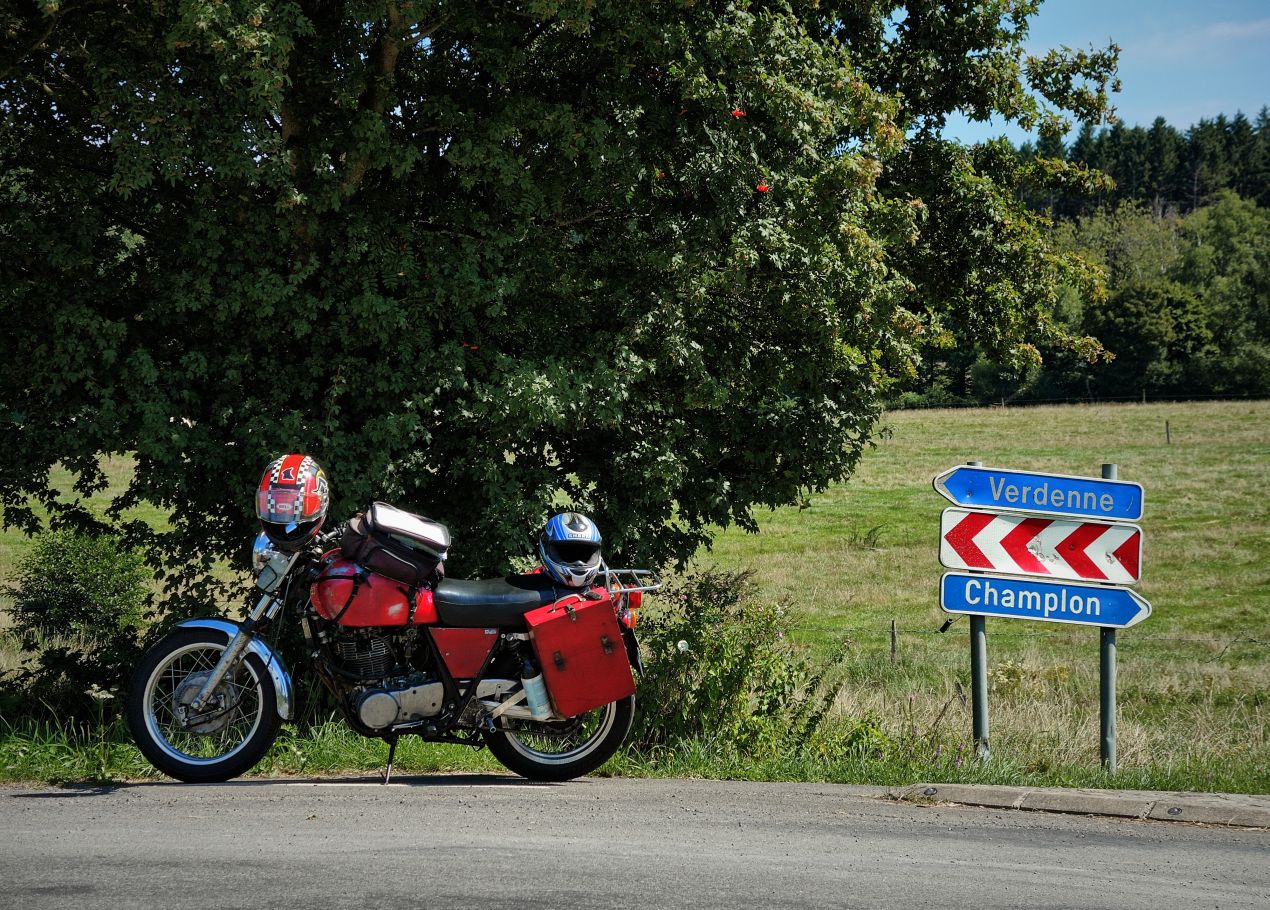 Météo hatte eine gute Prognose abgegeben, die SR frisch geserviced und eine schnuckelige Unterkunft in Braux gefunden mitten in der Hochsaison - nichts wie auf! Über Ostbelgien und die Amel, die Salm, dann ist man schon mitten in den Ardennen. Früher waren die Ardennen oft ein Regenloch, mit den aktuellen Änderungen werden sie freundlicher. Über die Höhe von Samrée an die Aisne, auch die Belgier haben eine kleine Aisne. In Hotton an der Ourthe wollten wir Pommes essen, aber die Kirmes hatte unsere Lieblingsfritérie zugeparkt - geschlossen.
